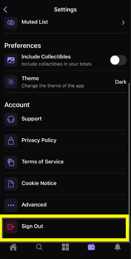 You can always safely disconnect from the Mobile App by going into the Wallet screen & in your Settings. From the Settings view, simply scroll completely down and then select "Sign Out"