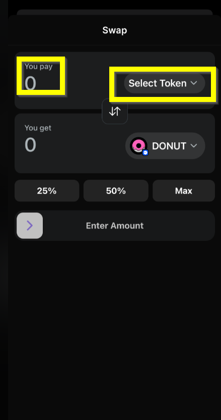 From the Swap menu all you have left to do is select the token you want to swap from and the amount, and the token you are swapping to.