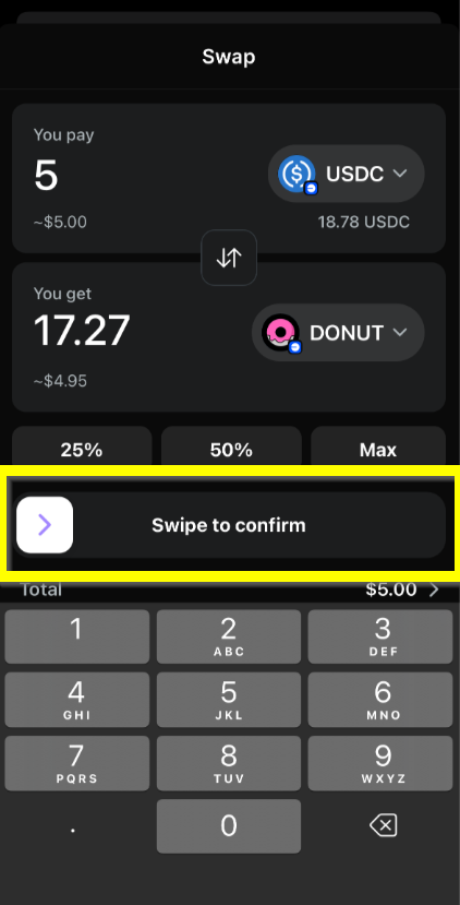 Zapper will present you with the best quote available. If you accept the trade, simply swipe right on the "Swipe to Confirm" button.