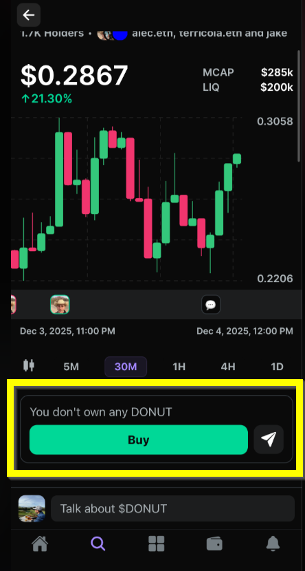 You can swap or cross-chain swap by visiting any token page. You can visit a token page by clicking on any token that appears on your feed, or from the search option at the bottom of your screen.