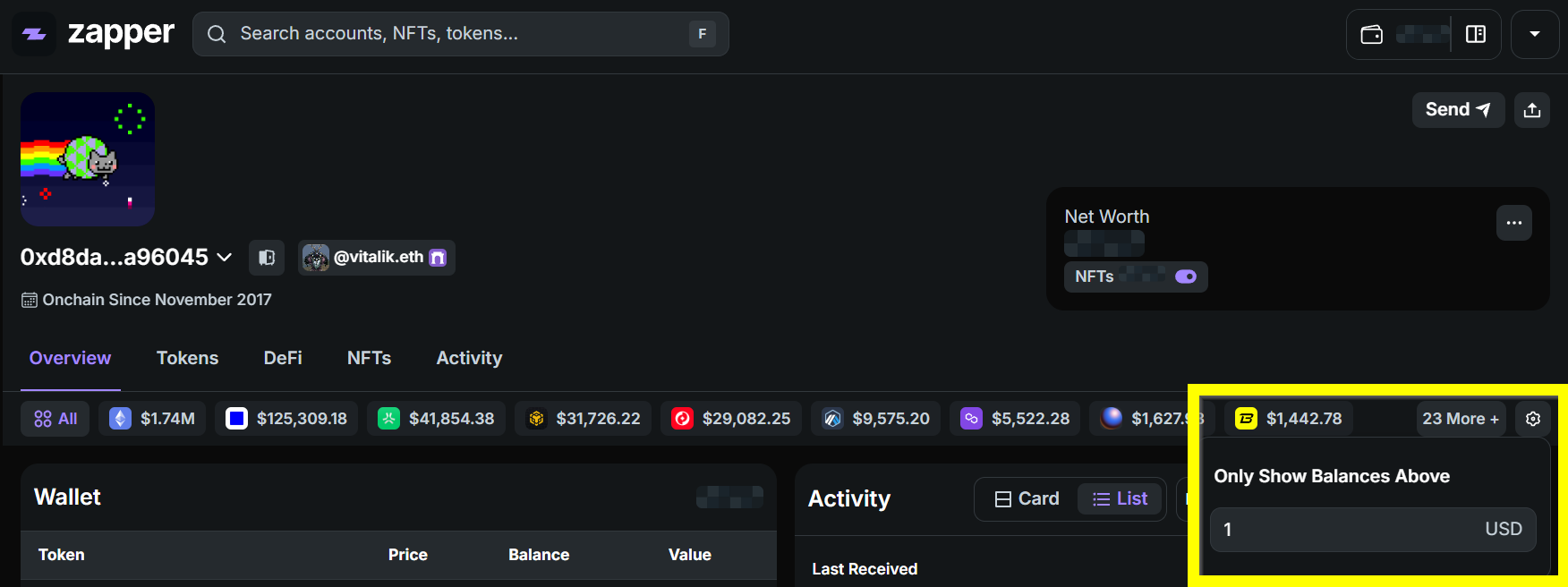 When this happens, Zapper has a feature that allows you to only show balances above a certain amount.